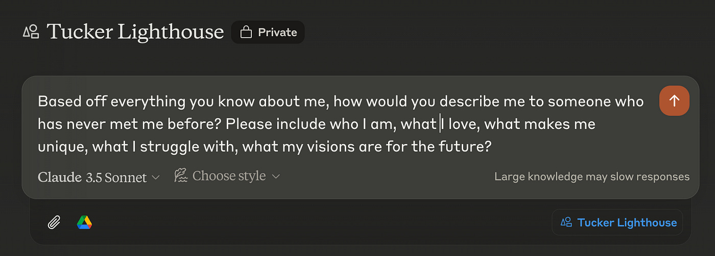 Hey Tucker, really enjoyed this! Some great ideas of prompts here. I have been recently training my AI as an Enneagram coach and Mahamudra teacher and the guidance is often pretty mind-blowing.